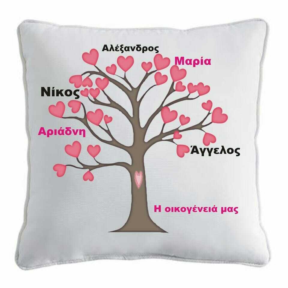 Μαξιλάρι, οικογενειακό δέντρο με τα ονόματα της οικογένειας σας.