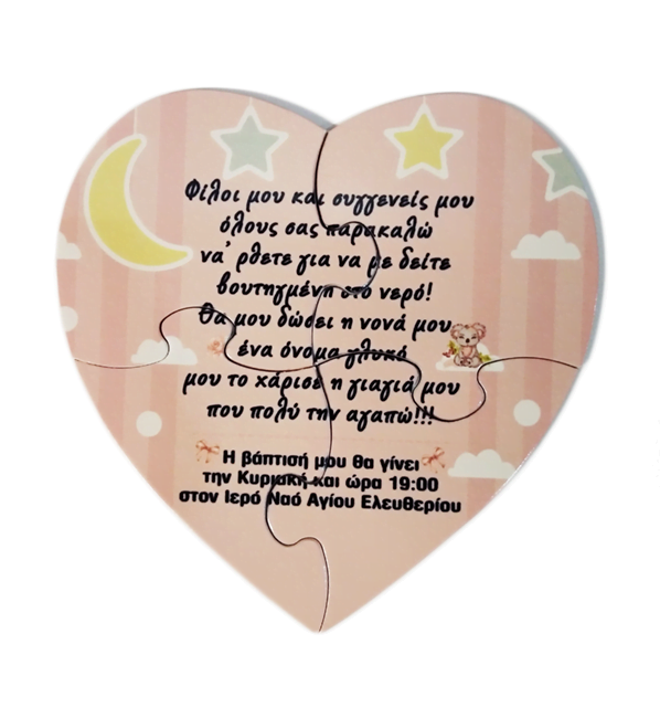 Παζλ καρδιά για προσκλητήριο, 12x12cm, με 4κομ.